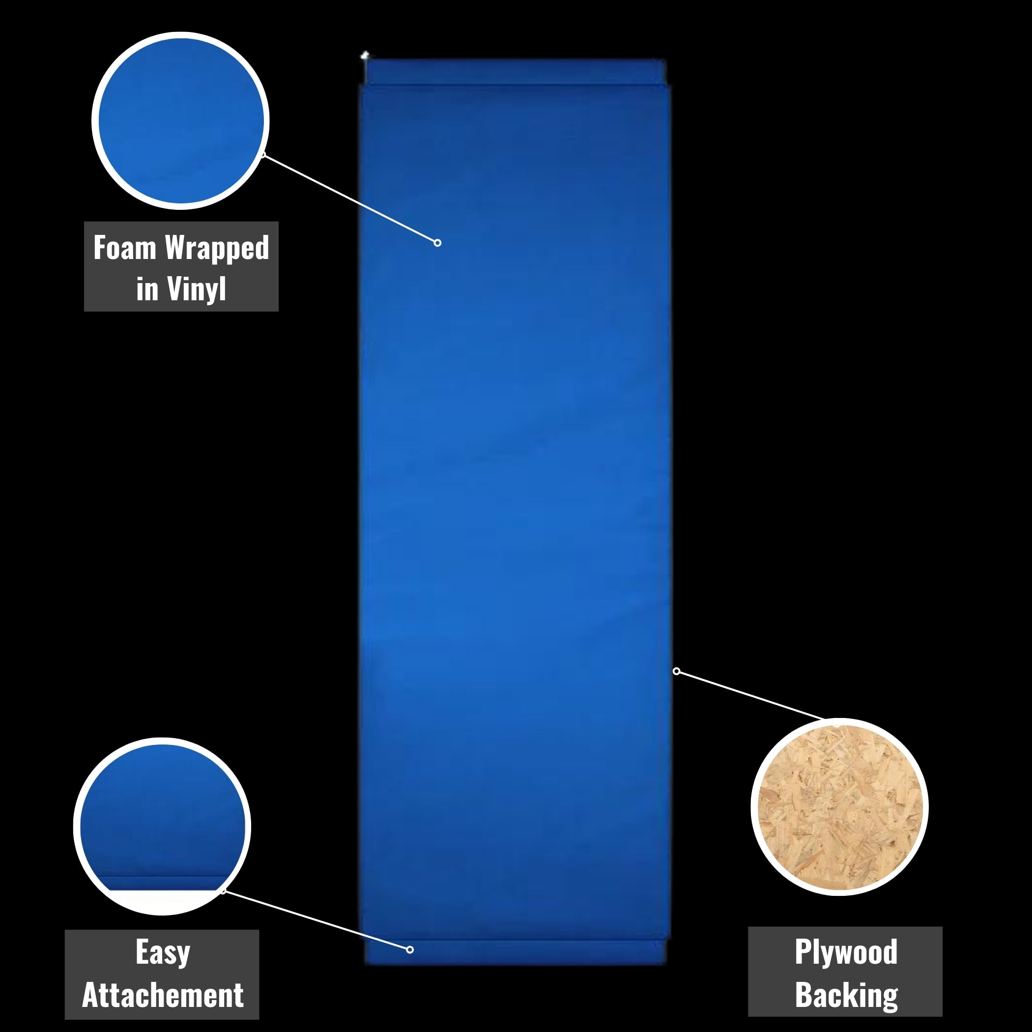 - Plywood backing with 3/4 inch lip at top and bottom for easy attachment